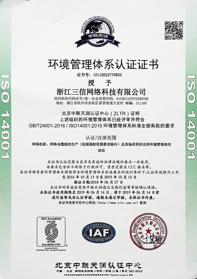 環境管理(lǐ)體(tǐ)系認證書(shū)
