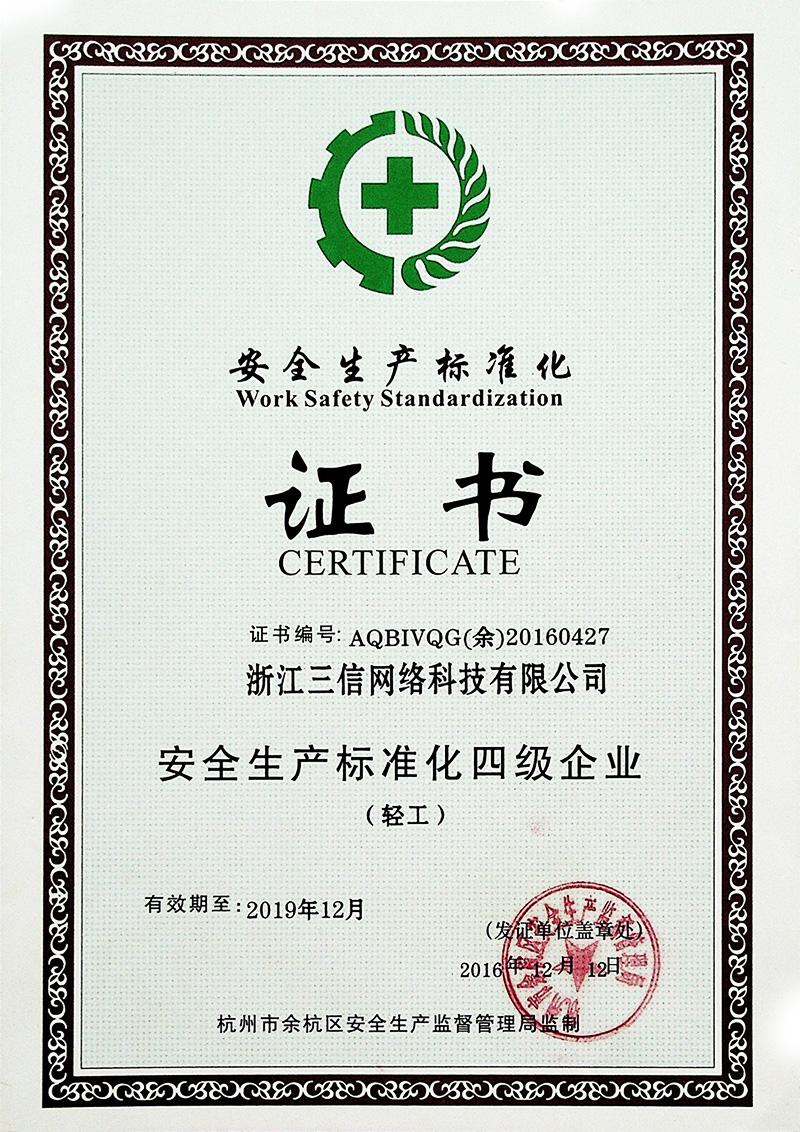安全生(shēng)産标準化(huà)證書(shū)