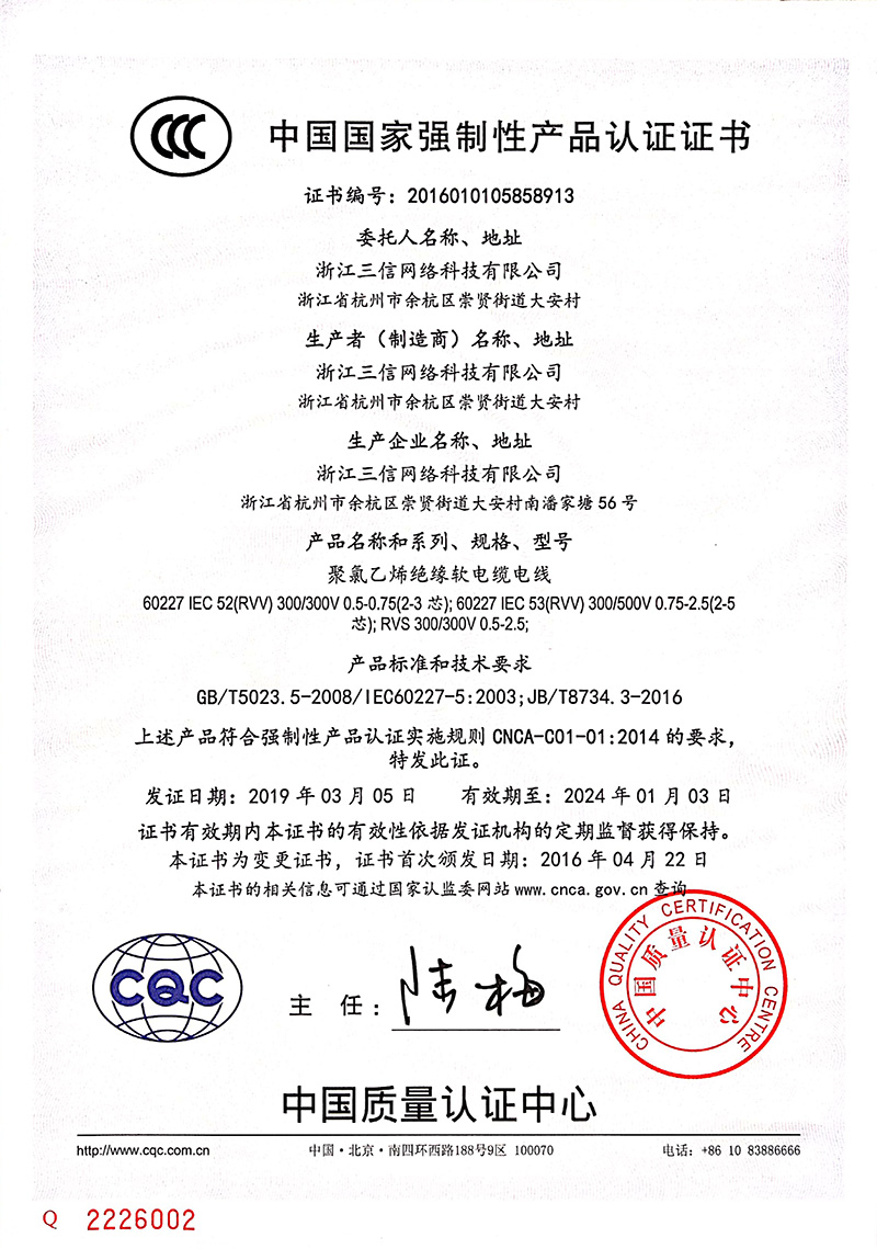 絕緣電(diàn)纜電(diàn)線3C認證